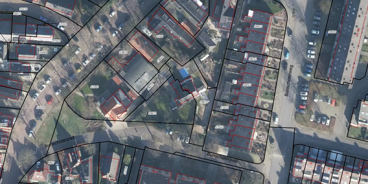 Het perceel waarop Bunschoterpad 5 staat heeft een oppervlakte van 590 m². Dit is een groot perceel. De perceeloppervlakte wordt geregistreerd door het Kadaster. Gedetailleerde informatie over de maten van dit perceel kunt u vinden in het rapport Kadastrale kaart met maatvoering van Bunschoterpad 5.