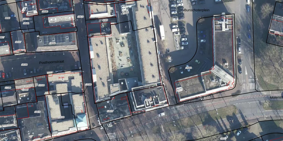Het perceel waarop Bunschoterplein 62 staat heeft een oppervlakte van 2212 m². Dit is een zeer groot perceel. De perceeloppervlakte wordt geregistreerd door het Kadaster. Gedetailleerde informatie over de maten van dit perceel kunt u vinden in het rapport Kadastrale kaart met maatvoering van Bunschoterplein 62.