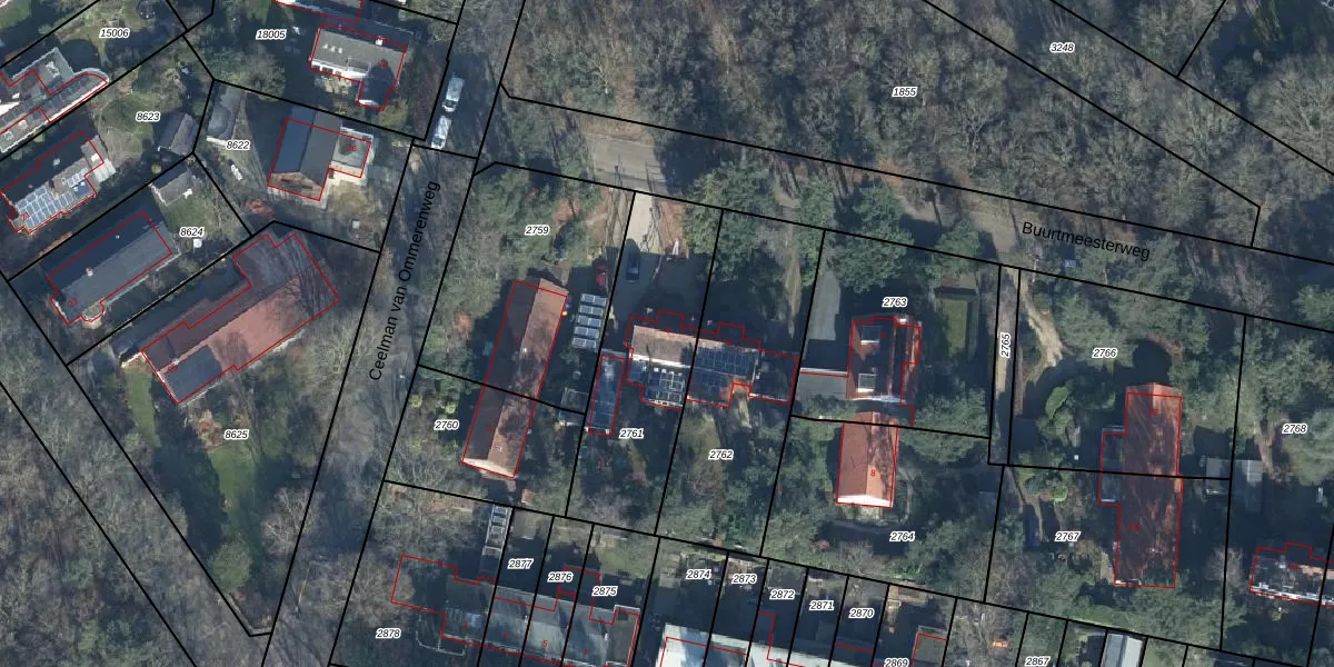 Gebruik de zoekbalk of klik op een perceel voor informatie over de adressen binnen dit perceel.