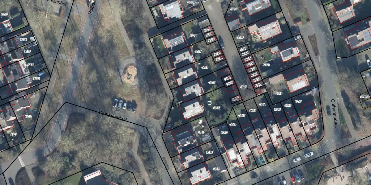 Het perceel waarop Catharinadaal 15 staat heeft een oppervlakte van 284 m². Dit is een middelgroot perceel. De perceeloppervlakte wordt geregistreerd door het Kadaster. Gedetailleerde informatie over de maten van dit perceel kunt u vinden in het rapport Kadastrale kaart met maatvoering van Catharinadaal 15.
