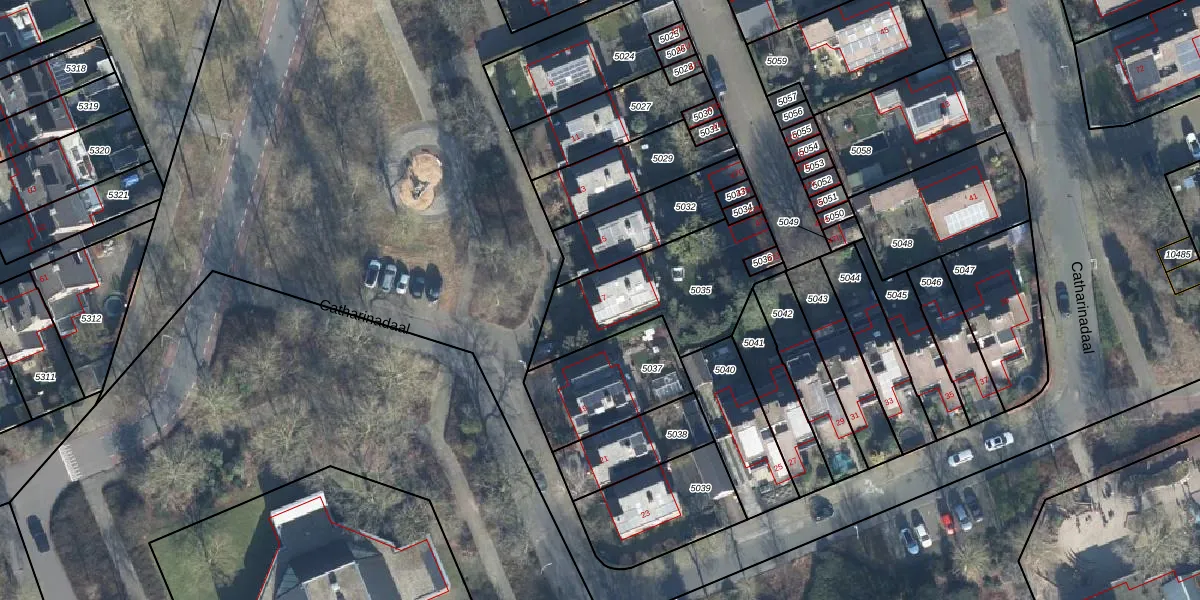 Het perceel waarop Catharinadaal 17 staat heeft een oppervlakte van 546 m². Dit is een groot perceel. De perceeloppervlakte wordt geregistreerd door het Kadaster. Gedetailleerde informatie over de maten van dit perceel kunt u vinden in het rapport Kadastrale kaart met maatvoering van Catharinadaal 17.