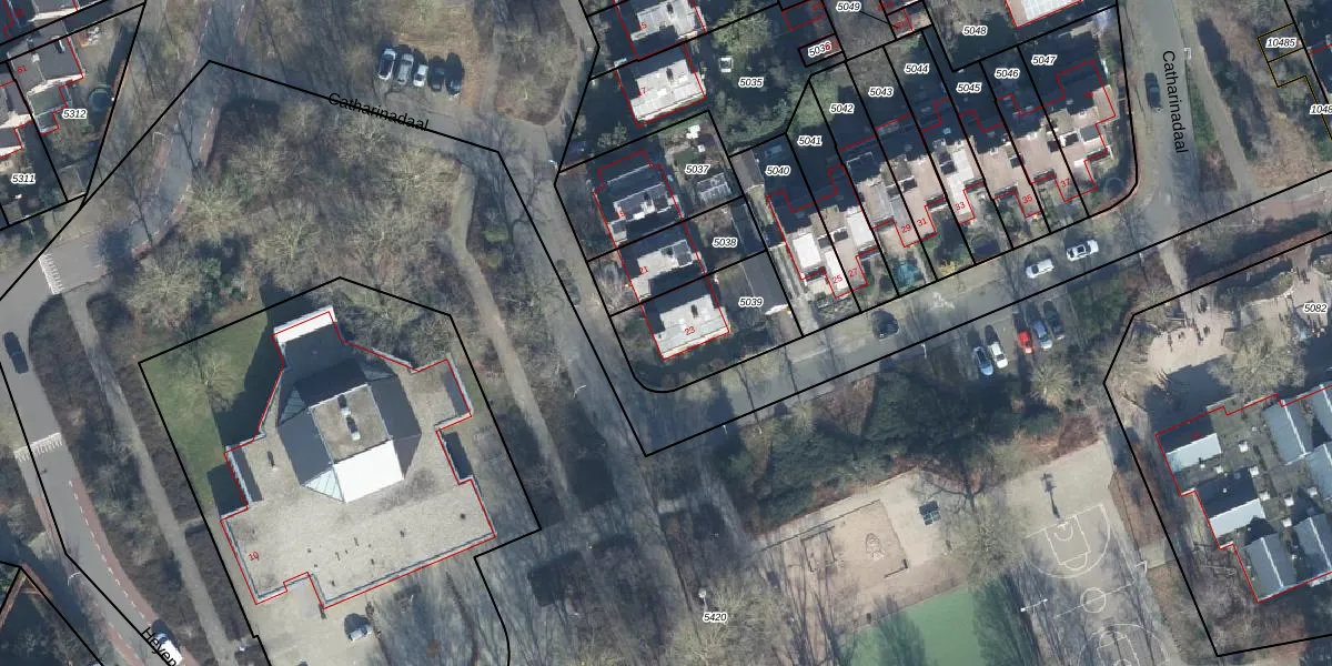 Het perceel waarop Catharinadaal 23 staat heeft een oppervlakte van 356 m². Dit is een groot perceel. De perceeloppervlakte wordt geregistreerd door het Kadaster. Gedetailleerde informatie over de maten van dit perceel kunt u vinden in het rapport Kadastrale kaart met maatvoering van Catharinadaal 23.