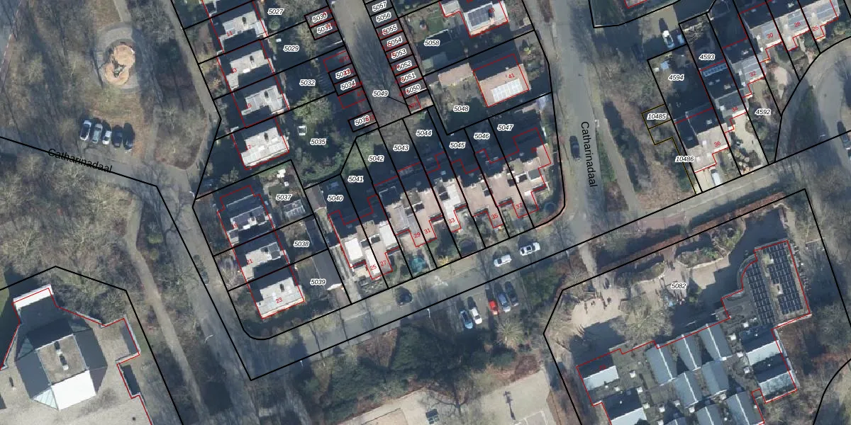 Catharinadaal 31 is gelegen op kadastraal perceel EDE01F5043. Deze kadastrale aanduiding is uniek en wordt gebruikt door het Kadaster om eigendomsrechten en andere zakelijke rechten vast te leggen. Het perceel maakt onderdeel uit van de kadastrale gemeente Ede.