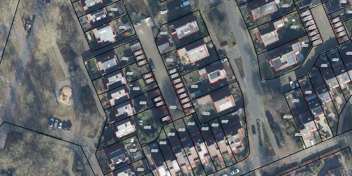 Het perceel waarop Catharinadaal 47-D staat heeft een oppervlakte van 18 m². Dit is een klein perceel. De perceeloppervlakte wordt geregistreerd door het Kadaster. Gedetailleerde informatie over de maten van dit perceel kunt u vinden in het rapport Kadastrale kaart met maatvoering van Catharinadaal 47-D.