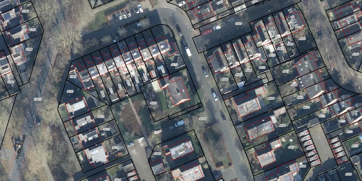 Gebruik de zoekbalk of klik op een perceel voor informatie over de adressen binnen dit perceel.