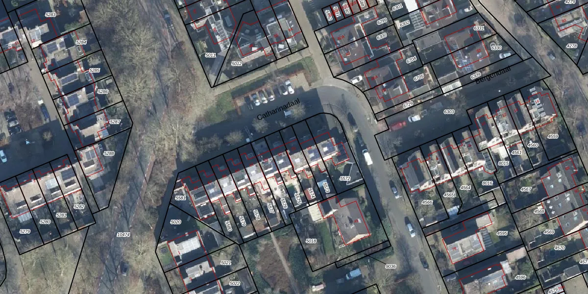 Het perceel waarop Catharinadaal 55 staat heeft een oppervlakte van 143 m². Dit is een middelgroot perceel. De perceeloppervlakte wordt geregistreerd door het Kadaster. Gedetailleerde informatie over de maten van dit perceel kunt u vinden in het rapport Kadastrale kaart met maatvoering van Catharinadaal 55.