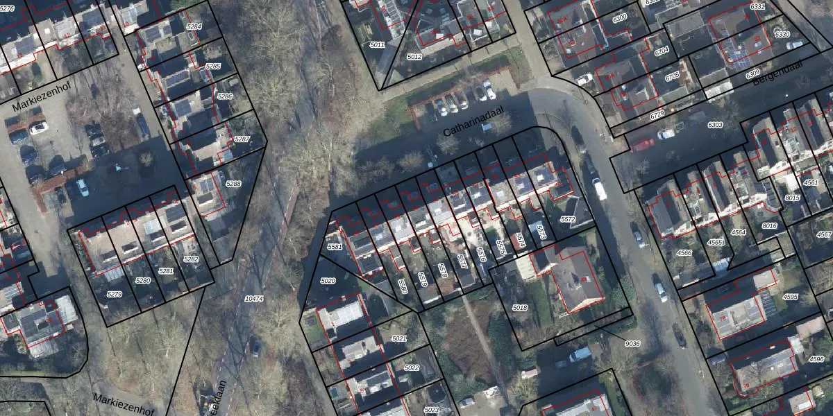 Het perceel waarop Catharinadaal 63 staat heeft een oppervlakte van 156 m². Dit is een middelgroot perceel. De perceeloppervlakte wordt geregistreerd door het Kadaster. Gedetailleerde informatie over de maten van dit perceel kunt u vinden in het rapport Kadastrale kaart met maatvoering van Catharinadaal 63.