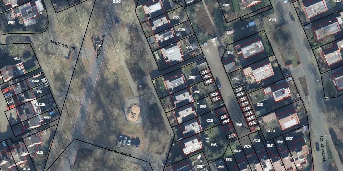Het perceel waarop Catharinadaal 9 staat heeft een oppervlakte van 370 m². Dit is een groot perceel. De perceeloppervlakte wordt geregistreerd door het Kadaster. Gedetailleerde informatie over de maten van dit perceel kunt u vinden in het rapport Kadastrale kaart met maatvoering van Catharinadaal 9.