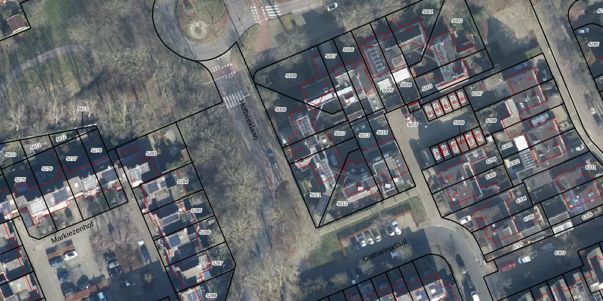 Het perceel waarop Catharinadaal 92 staat heeft een oppervlakte van 141 m². Dit is een middelgroot perceel. De perceeloppervlakte wordt geregistreerd door het Kadaster. Gedetailleerde informatie over de maten van dit perceel kunt u vinden in het rapport Kadastrale kaart met maatvoering van Catharinadaal 92.
