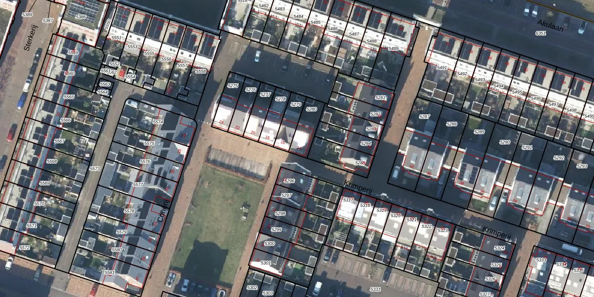 Gebruik de zoekbalk of klik op een perceel voor informatie over de adressen binnen dit perceel.