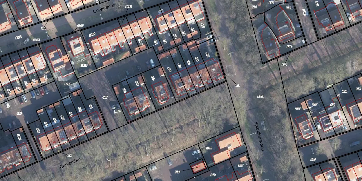 Gebruik de zoekbalk of klik op een perceel voor informatie over de adressen binnen dit perceel.