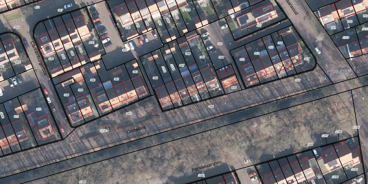 Het perceel waarop Cronebos 20 staat heeft een oppervlakte van 175 m². Dit is een middelgroot perceel. De perceeloppervlakte wordt geregistreerd door het Kadaster. Gedetailleerde informatie over de maten van dit perceel kunt u vinden in het rapport Kadastrale kaart met maatvoering van Cronebos 20.