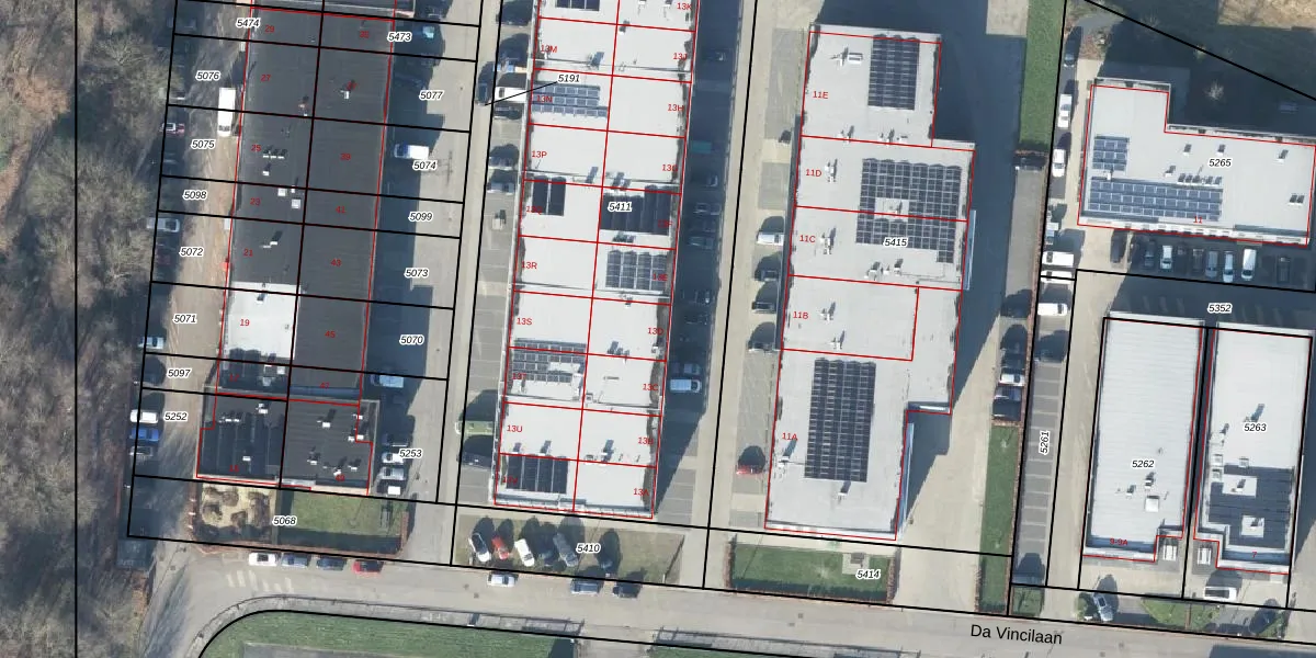Da Vincilaan 13-D is gelegen op kadastraal perceel EDE01E5411. Deze kadastrale aanduiding is uniek en wordt gebruikt door het Kadaster om eigendomsrechten en andere zakelijke rechten vast te leggen. Het perceel maakt onderdeel uit van de kadastrale gemeente Ede.