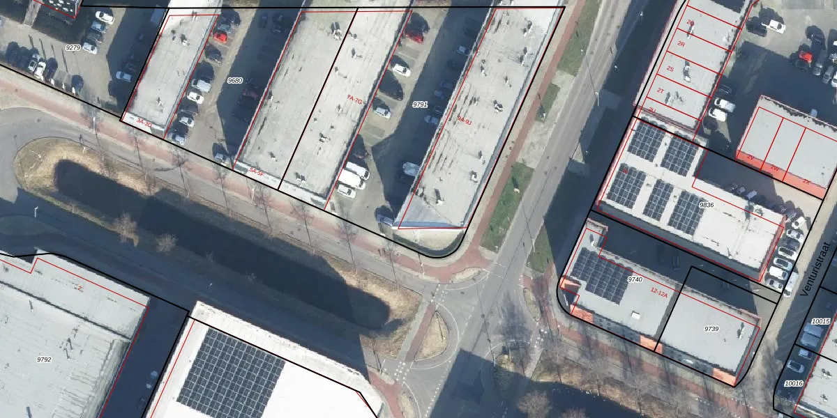 Het perceel waarop Darwinstraat 9-A staat heeft een oppervlakte van 2605 m². Dit is een zeer groot perceel. De perceeloppervlakte wordt geregistreerd door het Kadaster. Gedetailleerde informatie over de maten van dit perceel kunt u vinden in het rapport Kadastrale kaart met maatvoering van Darwinstraat 9-A.