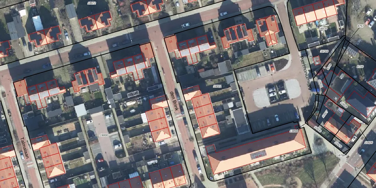Het perceel waarop den Brink 1 staat heeft een oppervlakte van 3760 m². Dit is een zeer groot perceel. De perceeloppervlakte wordt geregistreerd door het Kadaster. Gedetailleerde informatie over de maten van dit perceel kunt u vinden in het rapport Kadastrale kaart met maatvoering van den Brink 1.