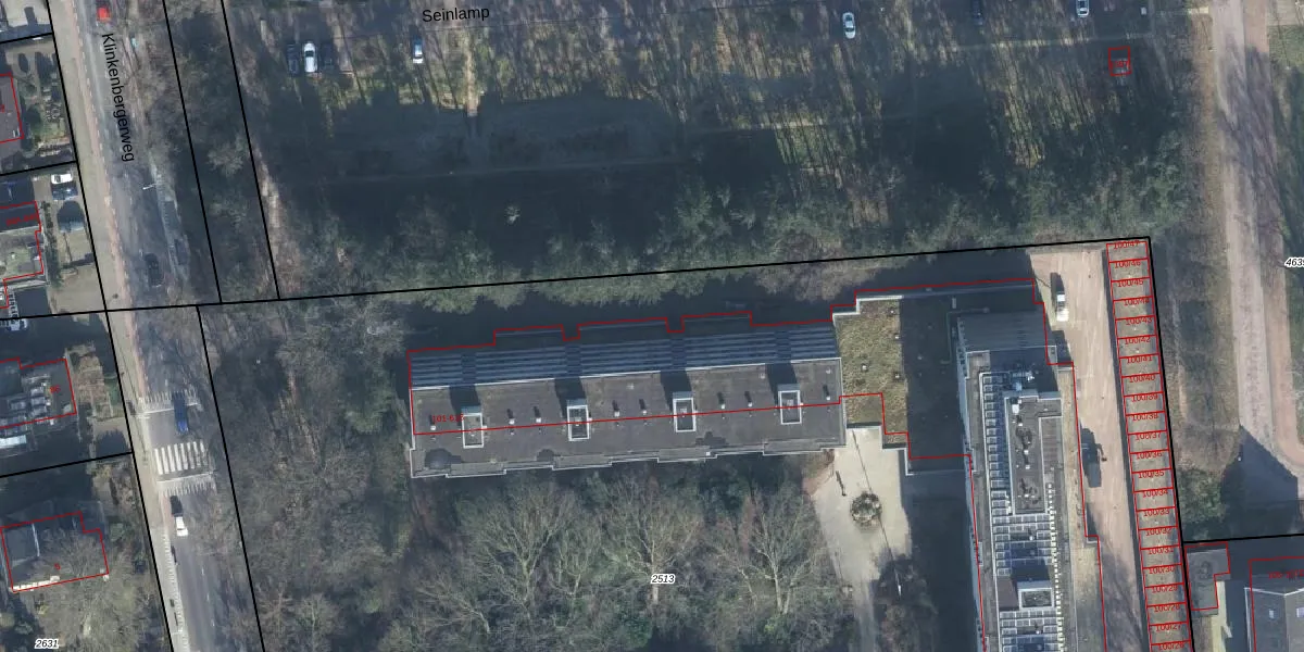Het perceel waarop Dennenlaan 100-7 staat heeft een oppervlakte van 1,3 ha. Dit is een zeer groot perceel. De perceeloppervlakte wordt geregistreerd door het Kadaster. Gedetailleerde informatie over de maten van dit perceel kunt u vinden in het rapport Kadastrale kaart met maatvoering van Dennenlaan 100-7.
