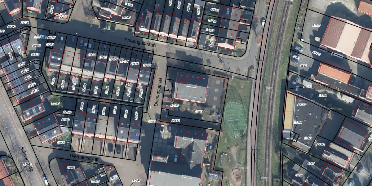 Het perceel waarop Diamantstraat 3-B staat heeft een oppervlakte van 797 m². Dit is een groot perceel. De perceeloppervlakte wordt geregistreerd door het Kadaster. Gedetailleerde informatie over de maten van dit perceel kunt u vinden in het rapport Kadastrale kaart met maatvoering van Diamantstraat 3-B.