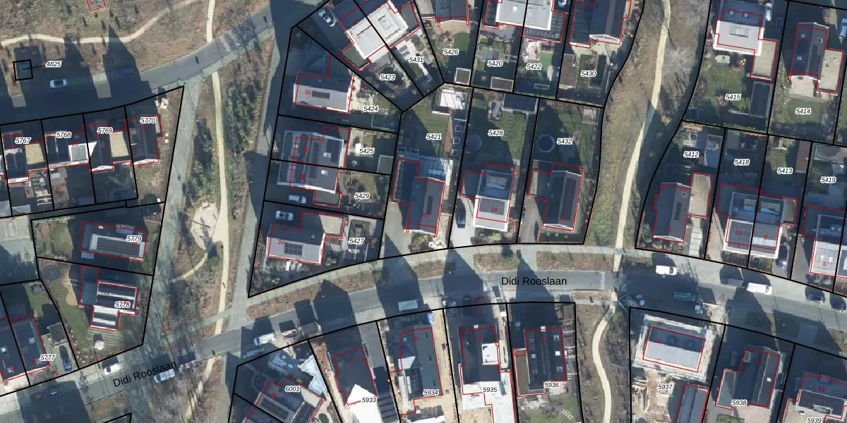 Het perceel waarop Didi Rooslaan 18 staat heeft een oppervlakte van 613 m². Dit is een groot perceel. De perceeloppervlakte wordt geregistreerd door het Kadaster. Gedetailleerde informatie over de maten van dit perceel kunt u vinden in het rapport Kadastrale kaart met maatvoering van Didi Rooslaan 18.