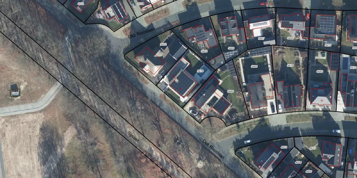 Gebruik de zoekbalk of klik op een perceel voor informatie over de adressen binnen dit perceel.