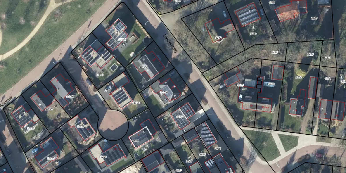 Het perceel waarop Diedenweg 32-B staat heeft een oppervlakte van 448 m². Dit is een groot perceel. De perceeloppervlakte wordt geregistreerd door het Kadaster. Gedetailleerde informatie over de maten van dit perceel kunt u vinden in het rapport Kadastrale kaart met maatvoering van Diedenweg 32-B.