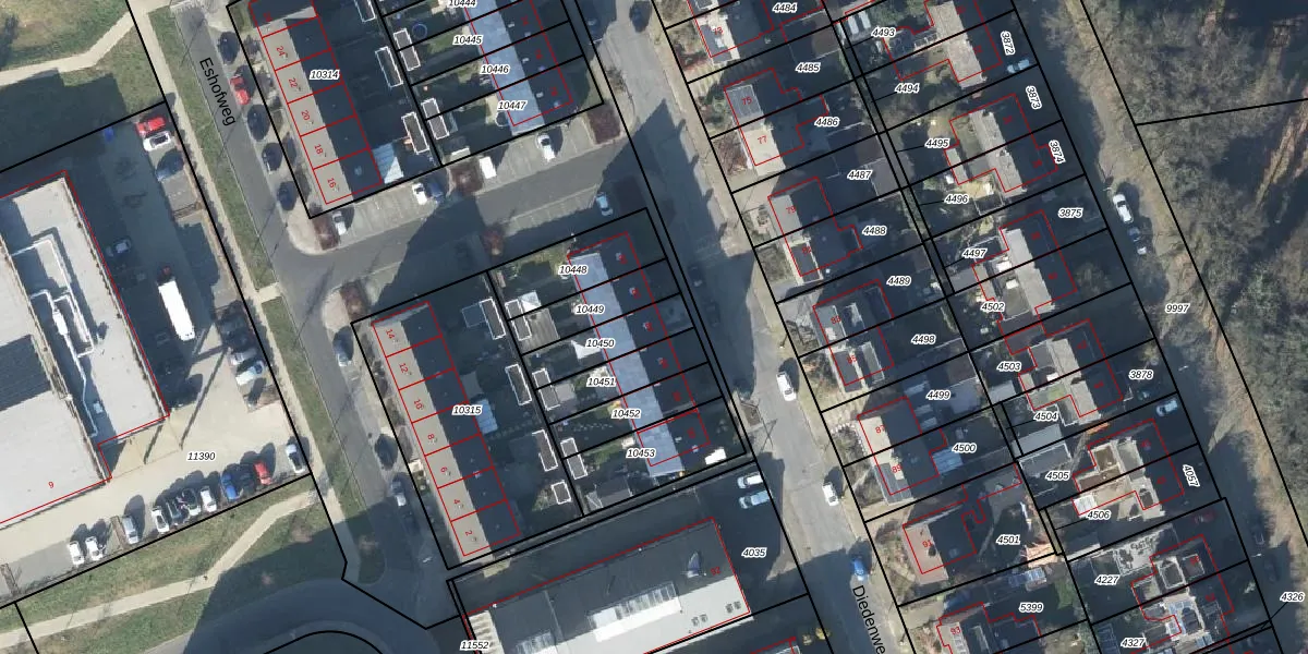 Gebruik de zoekbalk of klik op een perceel voor informatie over de adressen binnen dit perceel.