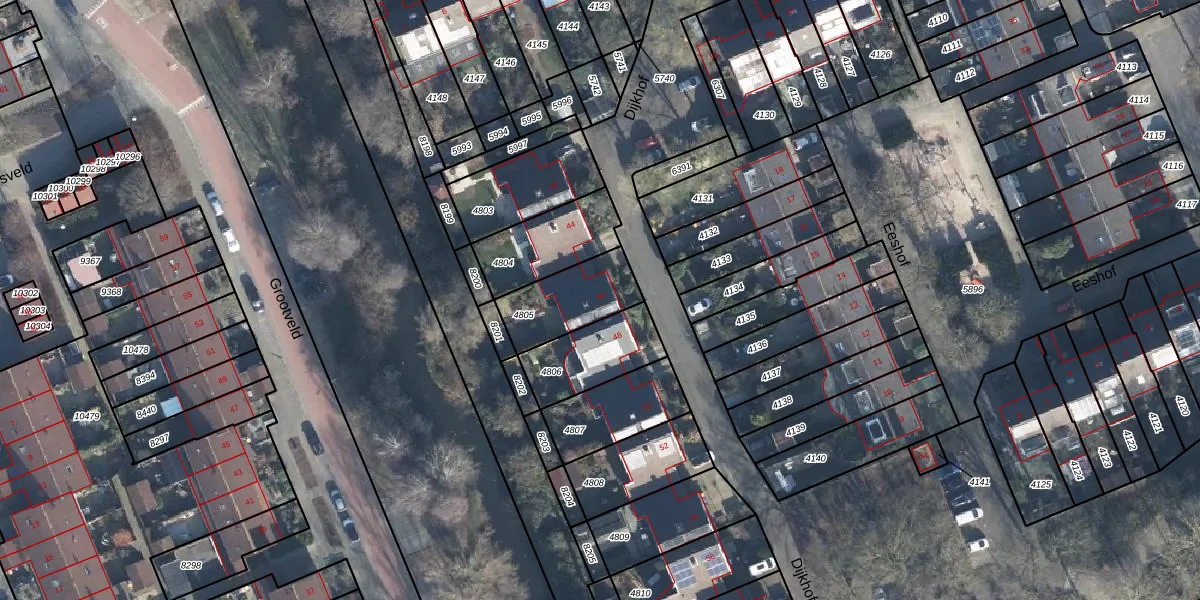 Het perceel waarop Dijkhof 46 staat heeft een oppervlakte van 230 m². Dit is een middelgroot perceel. De perceeloppervlakte wordt geregistreerd door het Kadaster. Gedetailleerde informatie over de maten van dit perceel kunt u vinden in het rapport Kadastrale kaart met maatvoering van Dijkhof 46.
