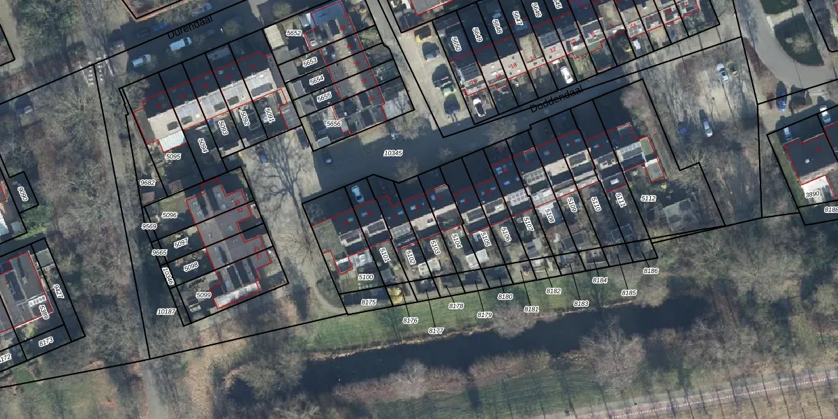 Gebruik de zoekbalk of klik op een perceel voor informatie over de adressen binnen dit perceel.