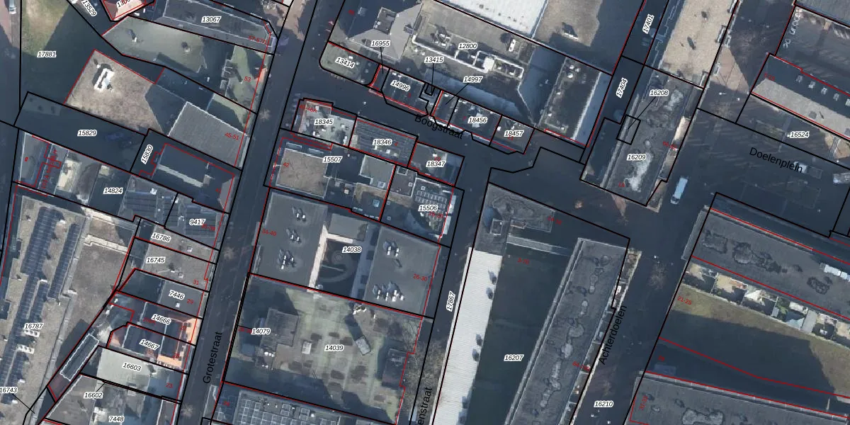 Het perceel waarop Doelenstraat 20-A staat heeft een oppervlakte van 246 m². Dit is een middelgroot perceel. De perceeloppervlakte wordt geregistreerd door het Kadaster. Gedetailleerde informatie over de maten van dit perceel kunt u vinden in het rapport Kadastrale kaart met maatvoering van Doelenstraat 20-A.