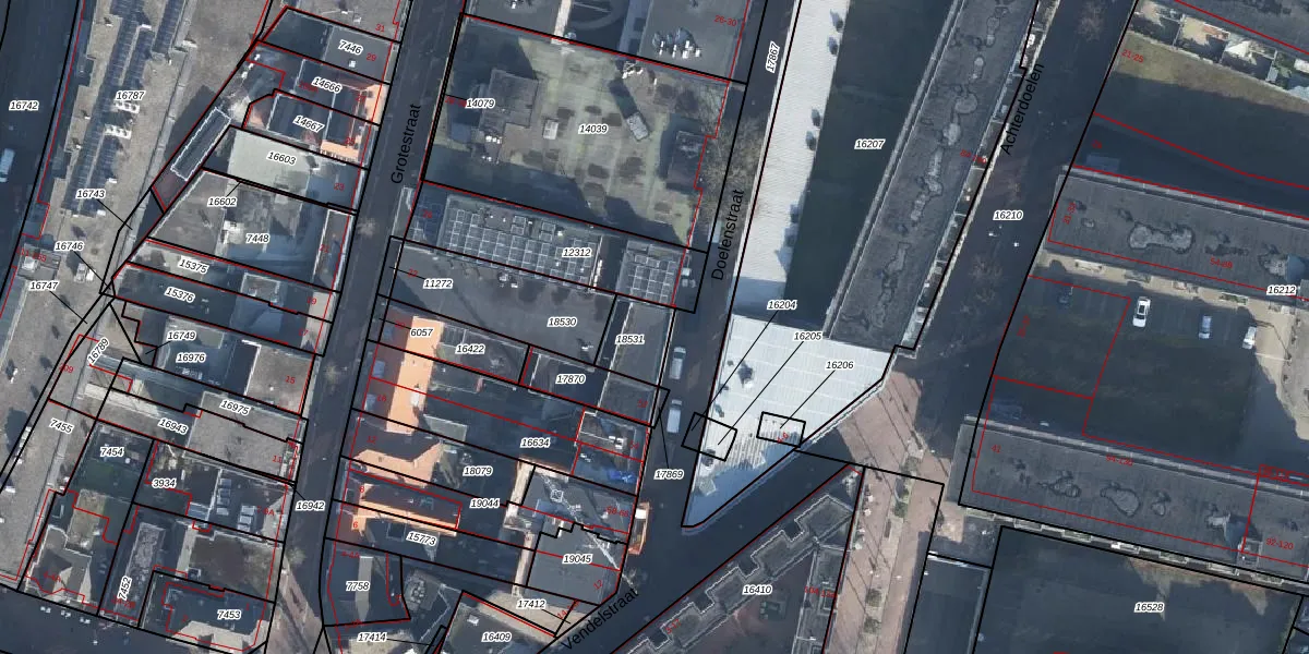 Het perceel waarop Doelenstraat 48 staat heeft een oppervlakte van 116 m². Dit is een middelgroot perceel. De perceeloppervlakte wordt geregistreerd door het Kadaster. Gedetailleerde informatie over de maten van dit perceel kunt u vinden in het rapport Kadastrale kaart met maatvoering van Doelenstraat 48.