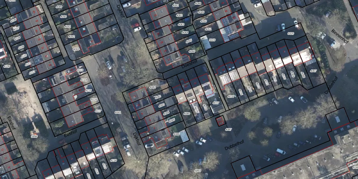 Gebruik de zoekbalk of klik op een perceel voor informatie over de adressen binnen dit perceel.