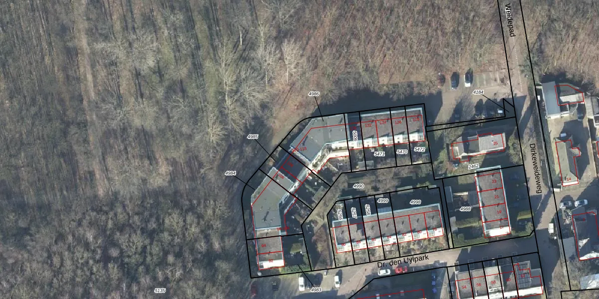 Dr. den Uylpark 110 is gelegen op kadastraal perceel EDE01E4986. Deze kadastrale aanduiding is uniek en wordt gebruikt door het Kadaster om eigendomsrechten en andere zakelijke rechten vast te leggen. Het perceel maakt onderdeel uit van de kadastrale gemeente Ede.
