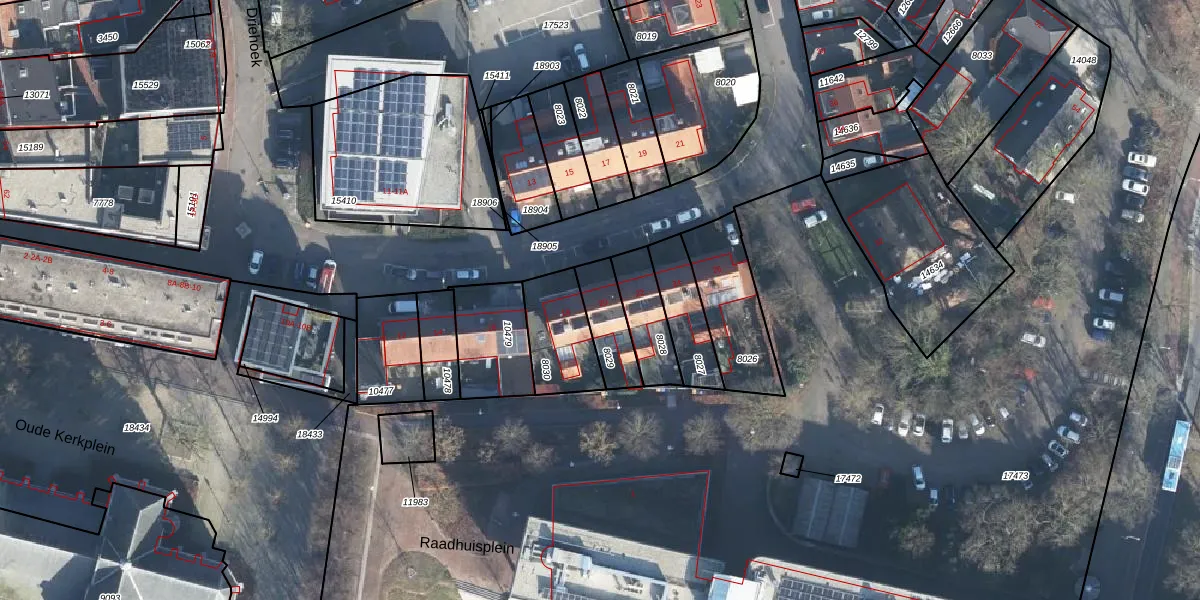 Gebruik de zoekbalk of klik op een perceel voor informatie over de adressen binnen dit perceel.