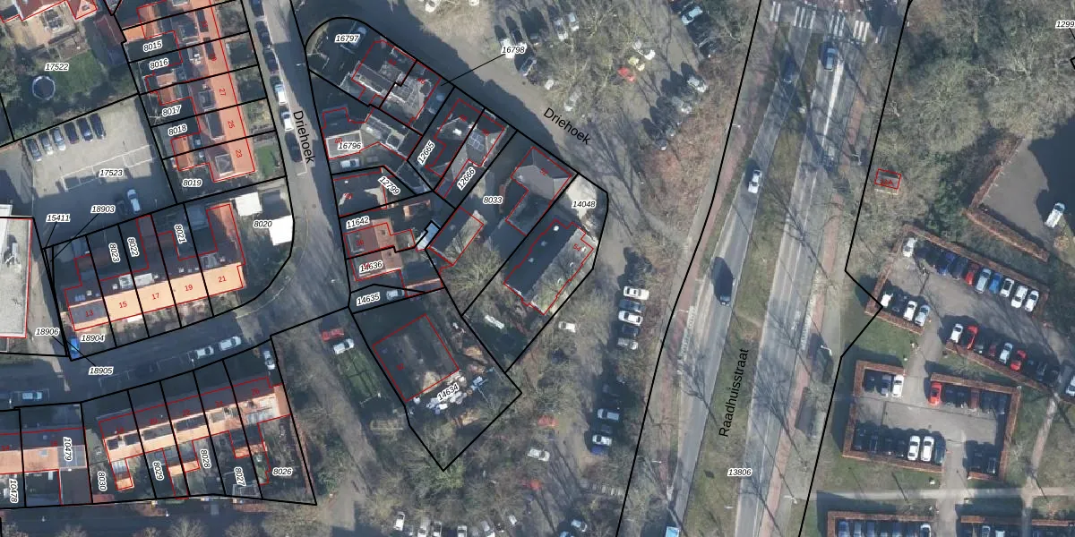 Het perceel waarop Driehoek 54 staat heeft een oppervlakte van 445 m². Dit is een groot perceel. De perceeloppervlakte wordt geregistreerd door het Kadaster. Gedetailleerde informatie over de maten van dit perceel kunt u vinden in het rapport Kadastrale kaart met maatvoering van Driehoek 54.