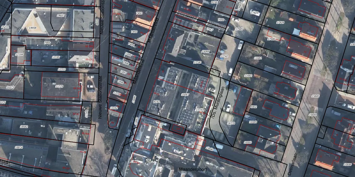 Het perceel waarop Ds. Muntinglaan 17 staat heeft een oppervlakte van 1335 m². Dit is een zeer groot perceel. De perceeloppervlakte wordt geregistreerd door het Kadaster. Gedetailleerde informatie over de maten van dit perceel kunt u vinden in het rapport Kadastrale kaart met maatvoering van Ds. Muntinglaan 17.