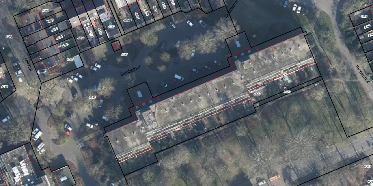 Het perceel waarop Dubbelhof 33 staat heeft een oppervlakte van 3600 m². Dit is een zeer groot perceel. De perceeloppervlakte wordt geregistreerd door het Kadaster. Gedetailleerde informatie over de maten van dit perceel kunt u vinden in het rapport Kadastrale kaart met maatvoering van Dubbelhof 33.