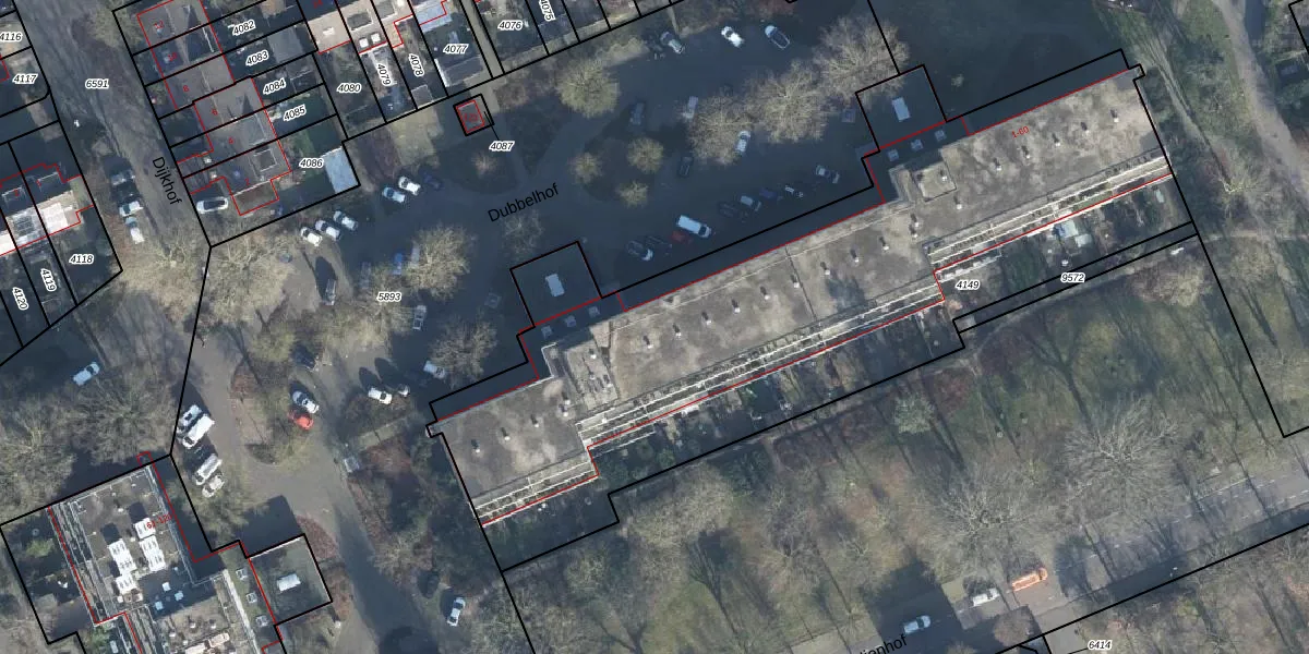Het perceel waarop Dubbelhof 44 staat heeft een oppervlakte van 3600 m². Dit is een zeer groot perceel. De perceeloppervlakte wordt geregistreerd door het Kadaster. Gedetailleerde informatie over de maten van dit perceel kunt u vinden in het rapport Kadastrale kaart met maatvoering van Dubbelhof 44.