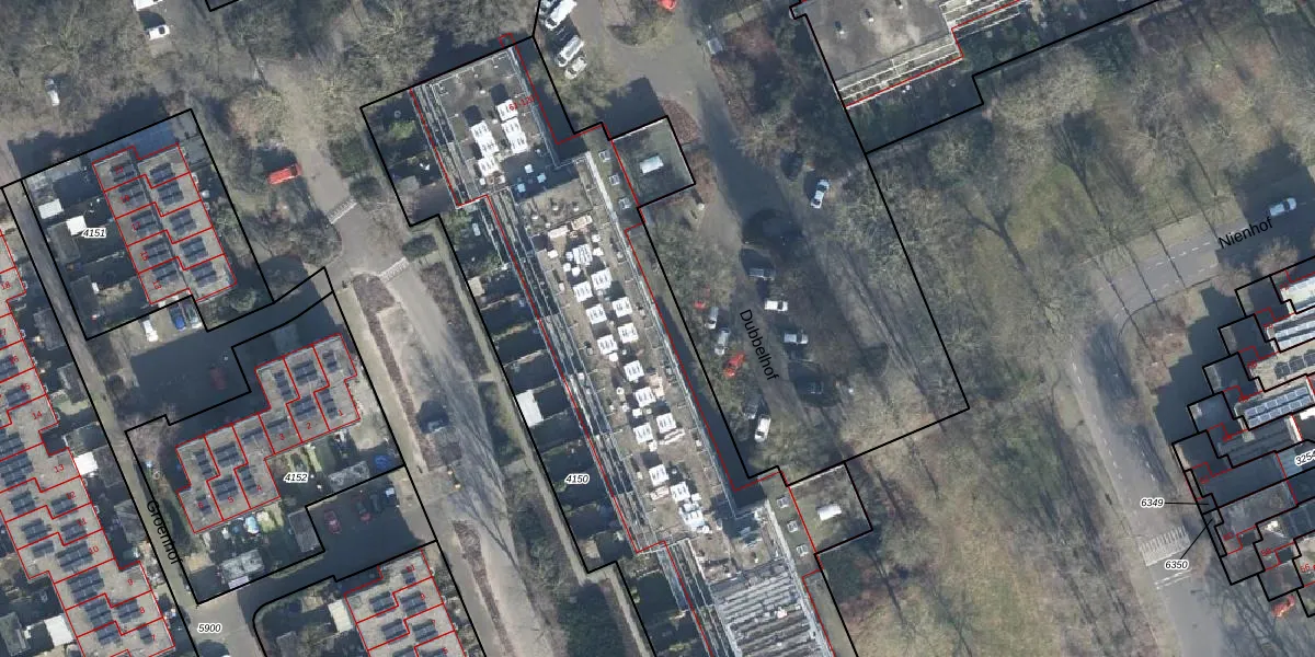 Het perceel waarop Dubbelhof 93 staat heeft een oppervlakte van 3600 m². Dit is een zeer groot perceel. De perceeloppervlakte wordt geregistreerd door het Kadaster. Gedetailleerde informatie over de maten van dit perceel kunt u vinden in het rapport Kadastrale kaart met maatvoering van Dubbelhof 93.