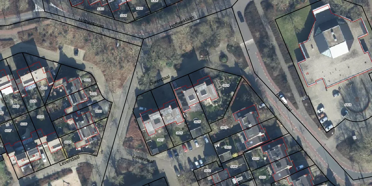 Het perceel waarop Durendaal 3 staat heeft een oppervlakte van 363 m². Dit is een groot perceel. De perceeloppervlakte wordt geregistreerd door het Kadaster. Gedetailleerde informatie over de maten van dit perceel kunt u vinden in het rapport Kadastrale kaart met maatvoering van Durendaal 3.