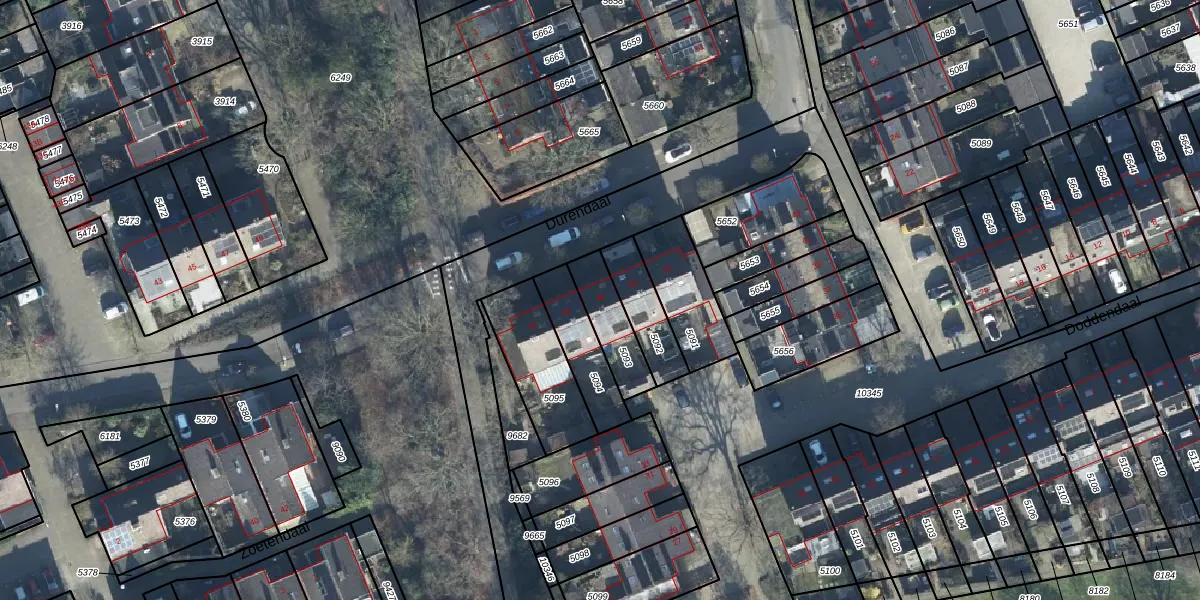 Het perceel waarop Durendaal 48 staat heeft een oppervlakte van 150 m². Dit is een middelgroot perceel. De perceeloppervlakte wordt geregistreerd door het Kadaster. Gedetailleerde informatie over de maten van dit perceel kunt u vinden in het rapport Kadastrale kaart met maatvoering van Durendaal 48.