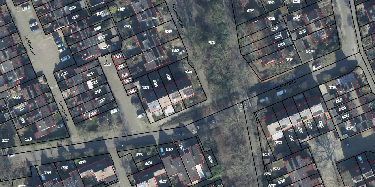 Het perceel waarop Durendaal 49 staat heeft een oppervlakte van 306 m². Dit is een groot perceel. De perceeloppervlakte wordt geregistreerd door het Kadaster. Gedetailleerde informatie over de maten van dit perceel kunt u vinden in het rapport Kadastrale kaart met maatvoering van Durendaal 49.
