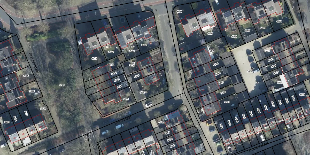 Durendaal 51 is gelegen op kadastraal perceel EDE01F5660. Deze kadastrale aanduiding is uniek en wordt gebruikt door het Kadaster om eigendomsrechten en andere zakelijke rechten vast te leggen. Het perceel maakt onderdeel uit van de kadastrale gemeente Ede.