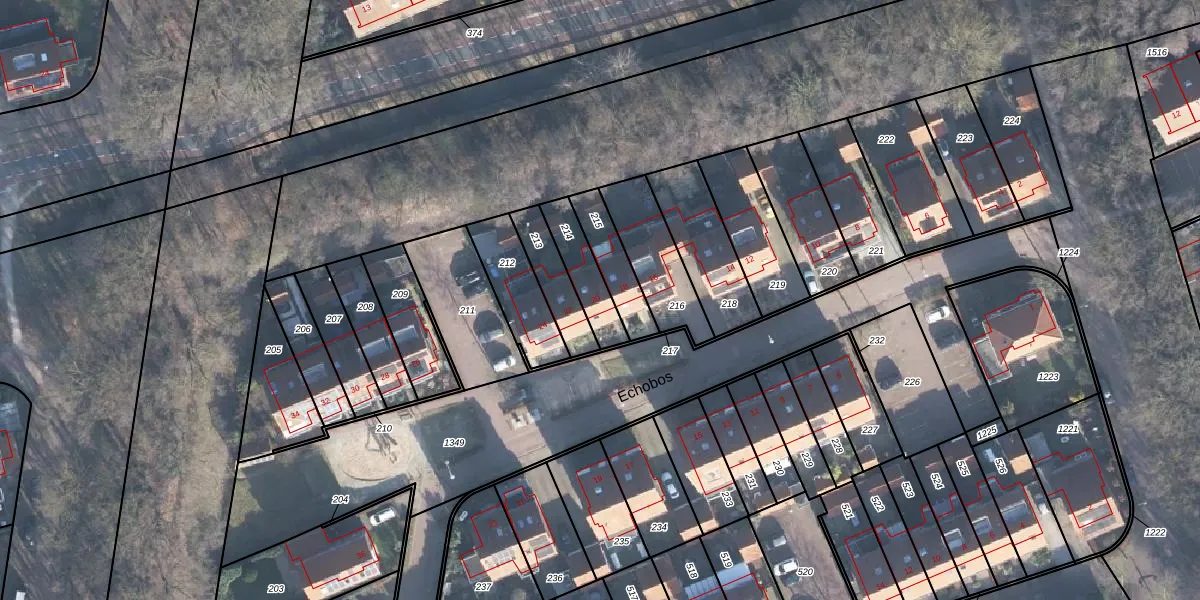 Echobos 20 is gelegen op kadastraal perceel EDE01N214. Deze kadastrale aanduiding is uniek en wordt gebruikt door het Kadaster om eigendomsrechten en andere zakelijke rechten vast te leggen. Het perceel maakt onderdeel uit van de kadastrale gemeente Ede.