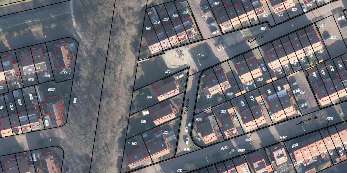 Het perceel waarop Echobos 36 staat heeft een oppervlakte van 410 m². Dit is een groot perceel. De perceeloppervlakte wordt geregistreerd door het Kadaster. Gedetailleerde informatie over de maten van dit perceel kunt u vinden in het rapport Kadastrale kaart met maatvoering van Echobos 36.