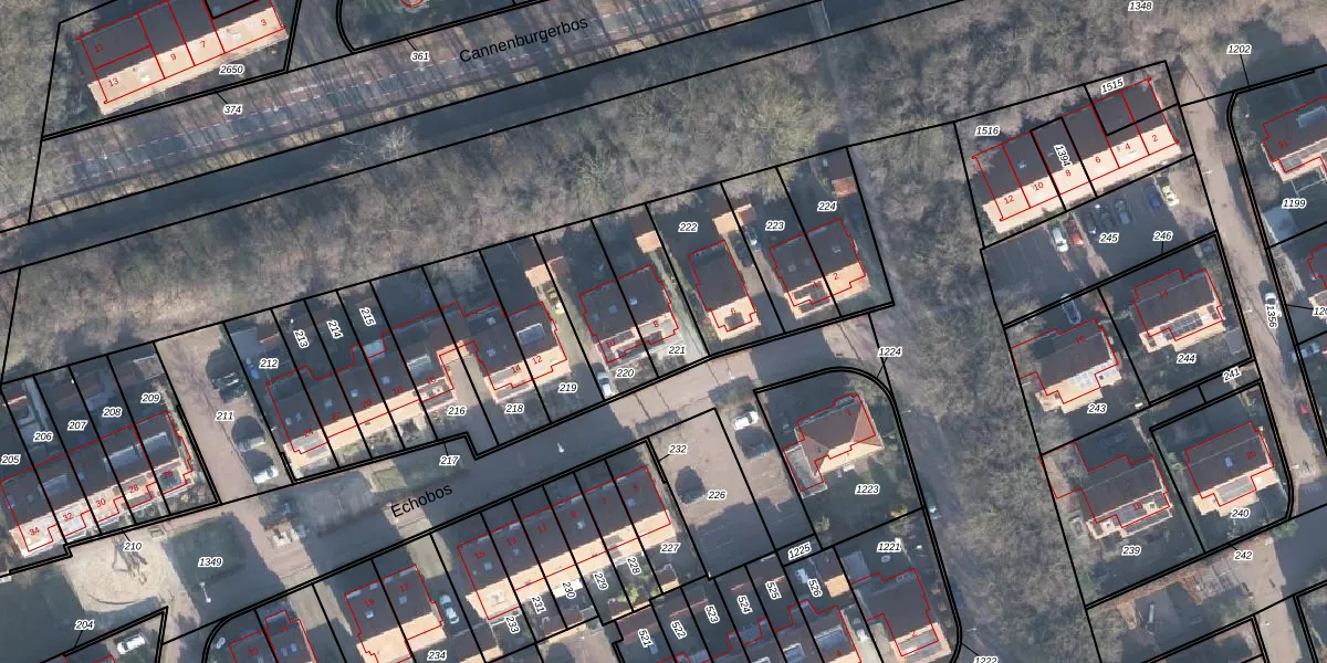 Het perceel waarop Echobos 8 staat heeft een oppervlakte van 215 m². Dit is een middelgroot perceel. De perceeloppervlakte wordt geregistreerd door het Kadaster. Gedetailleerde informatie over de maten van dit perceel kunt u vinden in het rapport Kadastrale kaart met maatvoering van Echobos 8.