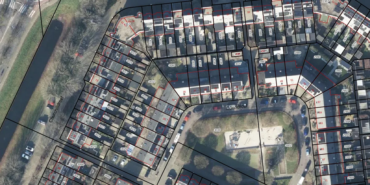 Edendreef 35 is gelegen op kadastraal perceel EDE01E3040. Deze kadastrale aanduiding is uniek en wordt gebruikt door het Kadaster om eigendomsrechten en andere zakelijke rechten vast te leggen. Het perceel maakt onderdeel uit van de kadastrale gemeente Ede.