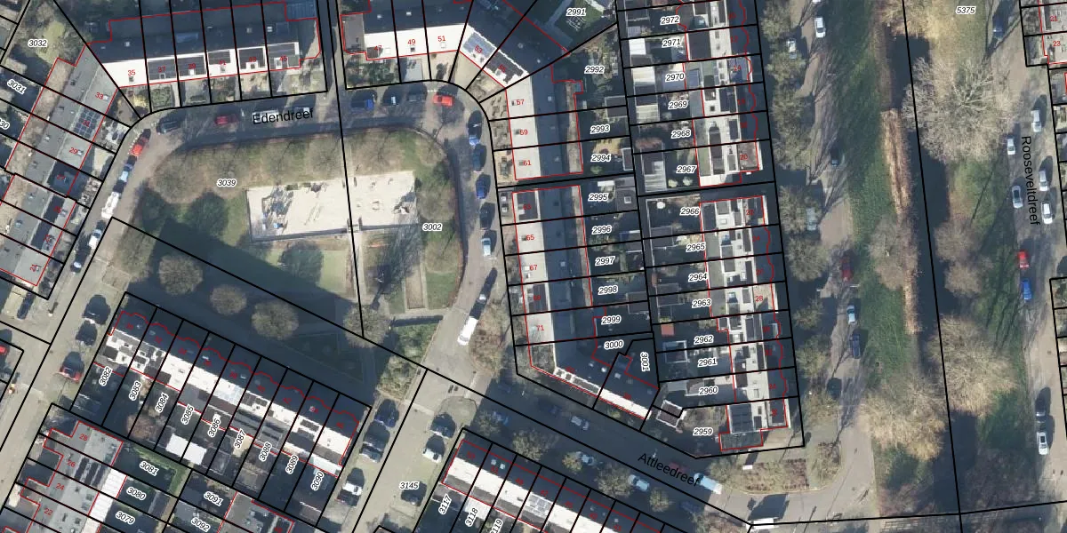 Edendreef 67 is gelegen op kadastraal perceel EDE01E2997. Deze kadastrale aanduiding is uniek en wordt gebruikt door het Kadaster om eigendomsrechten en andere zakelijke rechten vast te leggen. Het perceel maakt onderdeel uit van de kadastrale gemeente Ede.
