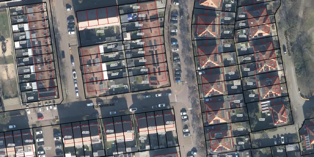 Het perceel waarop Edisonstraat 2 staat heeft een oppervlakte van 256 m². Dit is een middelgroot perceel. De perceeloppervlakte wordt geregistreerd door het Kadaster. Gedetailleerde informatie over de maten van dit perceel kunt u vinden in het rapport Kadastrale kaart met maatvoering van Edisonstraat 2.