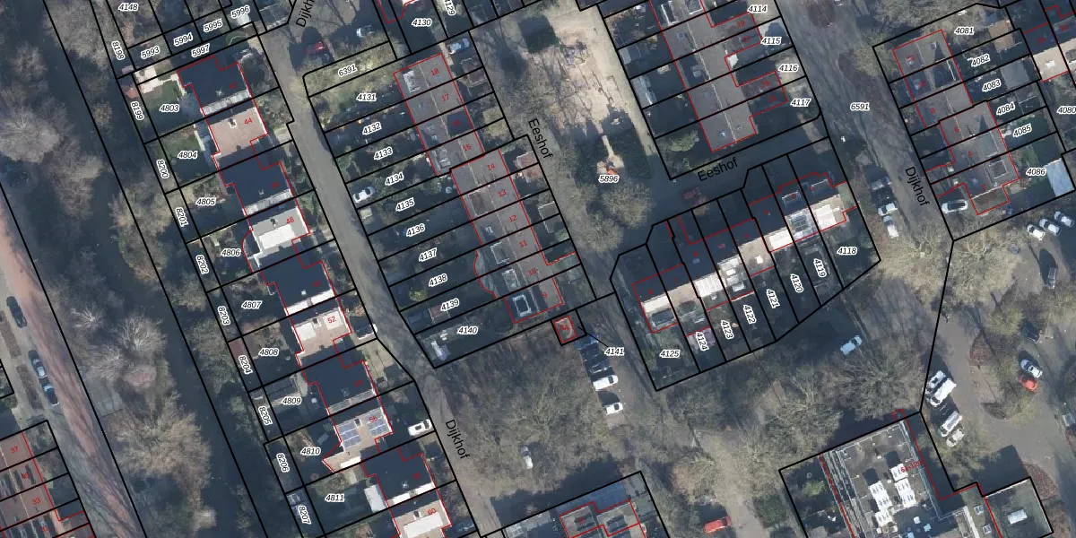Het perceel waarop Eeshof 10 staat heeft een oppervlakte van 175 m². Dit is een middelgroot perceel. De perceeloppervlakte wordt geregistreerd door het Kadaster. Gedetailleerde informatie over de maten van dit perceel kunt u vinden in het rapport Kadastrale kaart met maatvoering van Eeshof 10.