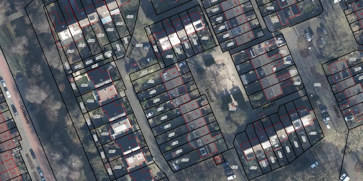 Het perceel waarop Eeshof 16 staat heeft een oppervlakte van 163 m². Dit is een middelgroot perceel. De perceeloppervlakte wordt geregistreerd door het Kadaster. Gedetailleerde informatie over de maten van dit perceel kunt u vinden in het rapport Kadastrale kaart met maatvoering van Eeshof 16.