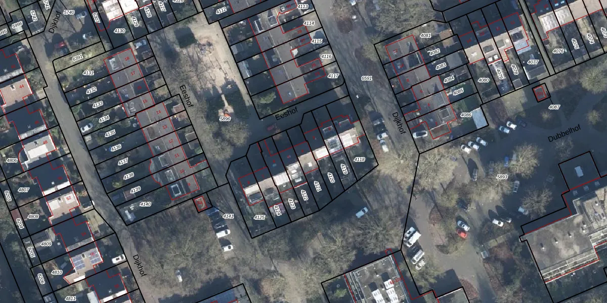 Het perceel waarop Eeshof 4 staat heeft een oppervlakte van 145 m². Dit is een middelgroot perceel. De perceeloppervlakte wordt geregistreerd door het Kadaster. Gedetailleerde informatie over de maten van dit perceel kunt u vinden in het rapport Kadastrale kaart met maatvoering van Eeshof 4.